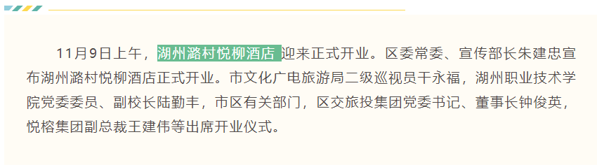 區(qū)委常委、宣傳部長(zhǎng)朱建忠宣布湖州潞村悅柳酒店正式開(kāi)業(yè)